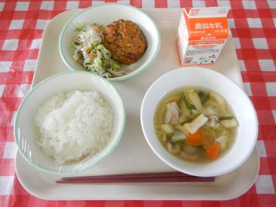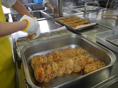 今日は本の日でした。「SDGsクッキング」で色々なレシピを見て、給食でできるSDGsレシピ献立の「豆腐ハンバーグ」を作りました。大豆ミートや豆腐を使っています。