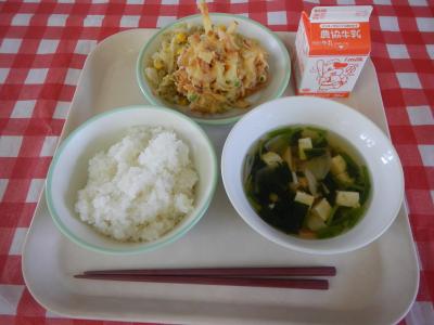 2023/10/16 ごはん、牛乳、ささみチーズフライ、しらす和え、ねぎの味噌汁