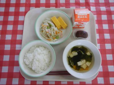9/20 ご飯、だし巻き卵、大根サラダ、すまし汁、ミニおはぎ