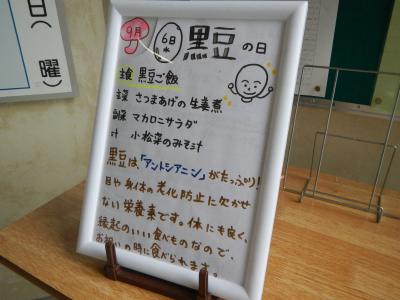 9/6 黒豆ごはん、さつま揚げの生姜煮、マカロニサラダ、小松菜の味噌汁