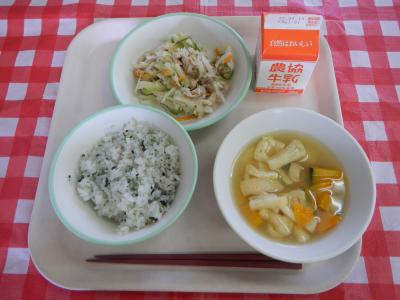 9/7 わかめごはん、焼肉サラダ、かぼちゃのみそ汁