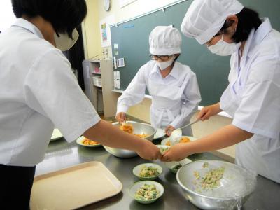 梅を使った料理を食べる習慣があるので、給食でも梅を使いました。