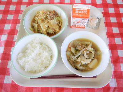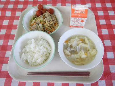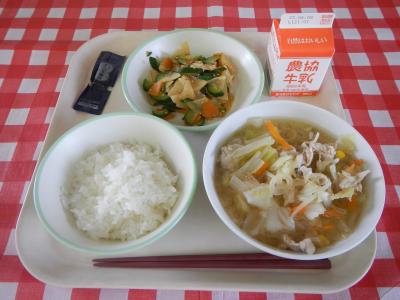 2023/6/1 ごはん、牛乳、華風きゅうり、味噌ラーメン、のりの佃煮