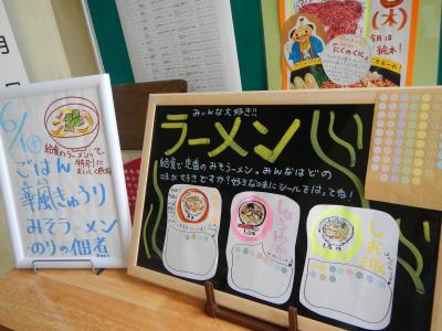 ラーメンの麺は三崎中学校では冷凍を使っています。色々な商品を試した結果、冷凍麺が一番伸びにくく、おいしかったので、冷凍になりました。