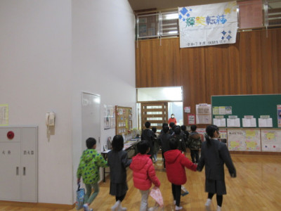 来年度、新1年生となる保育所の年長さんと1・2年生の交流会が行われました。学校クイズに挑戦したり、劇を披露したり、みんなで歌を歌ったりと、笑顔あふれるひとときを一緒に過ごしました。はじめは少し緊張した様子も見られましたが、時間がたつにつれて自然と笑顔が広がりました。広い校舎を案内する1・2年生の表...