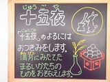 今日は十五夜です。お天気も良くてお月見できますね。デザートのムース大福は丸くて黄色くて、満月のように見えました