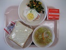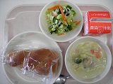 米粉パンはもっちりした食感が人気です。前日から楽しみにしている子もいました。野菜とチーズのあえものもおかわりする子がたくさんいました。今年初めておかわりした!という3年生もいました