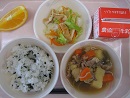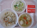 今日のごはんには、鶏ひき肉、ごぼう、にんじん、たまごそぼろを入れました。今日は6年生が陸上大会でいませんでしたが、ごはんもスープもおかわりする人がたくさんいました