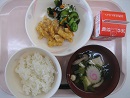 今日は頭のついた豆あじの唐揚げに苦戦している子がいました。海が近い地域とはいえ、あまり食べ慣れていないようすも見られました。給食では、ちょっと苦手なものも出るかもしれないけど、何でも食べられるように練習しようねと声をかけています