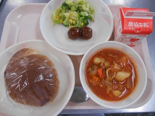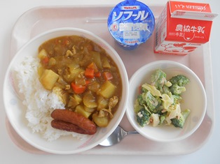 今日は、みんな大好きウィンナーカレー給食です。