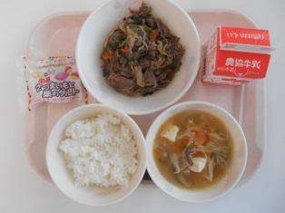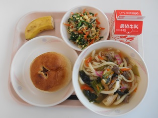 今日は、肉うどん給食です。