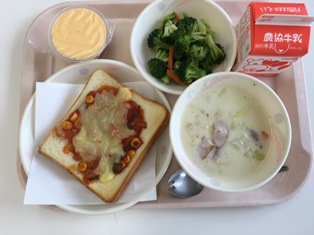 今日は、ピザトースト給食です。