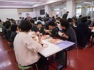 一緒に給食を食べました。