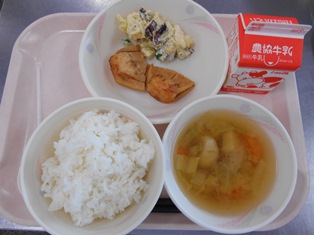 今日は、さつまいもサラダ給食です。