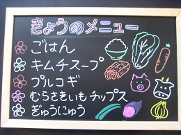 プルコギは韓国風のすきやきといった感じの料理です すりおろしのりんごや、コチュジャン、さとうで甘みを出し、しょうゆ、塩、ごま油で味をととのえます。牛肉の他、にんじん、にら、たまねぎ、しらたき、しめじを加え、栄養満点の料理になっています 丼にするといいよ~というアドバイスももらいました