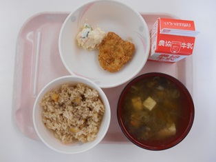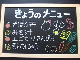 今日は、輪島でとれたさざえ、ふぐ、もずくと、門前でとれたじゃがいもをたくさん使った「輪島の日給食」です。