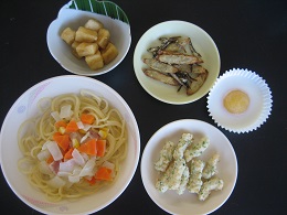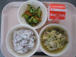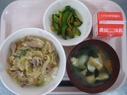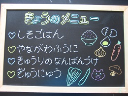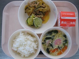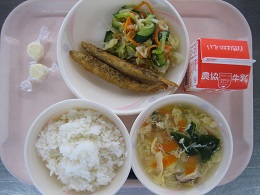 豚キムチ炒めは、唐辛子がピリッときいていましたが、ごはんに合っていてみんな残さず食べていました