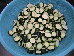ズッキーニは1本を12~15切れに切りました。