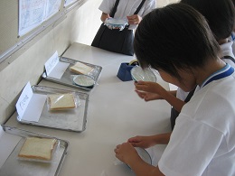 お昼休みに保健・給食委員会で、手の汚れ実験をしました。食パンと培地にいろんな場面の手をつけてみました。保健室前に並べて変化のようすをみます![]()