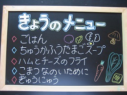 チーズが苦手で、残したいという子もいましたが、最後にはがんばって全部食べていました