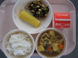 給食では煮物も汁物を兼ねることが多いので、汁まで飲めるように薄味で仕上げます 今日も残す子はいませんでした 昼休みは運動会の練習で元気いっぱいに活動していました