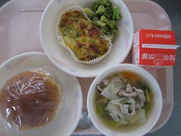 豆パンの豆は、苦手そうにしている子がちらほら・・・。何でも食べられるように、給食で練習して欲しいので、ひとつでもいいから食べようねと声をかけました