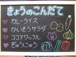 今日は子どもたちの大好きなメニューだったので、みんなニコニコ早く食べ終わりました![]()
