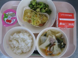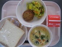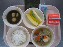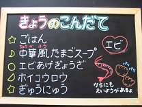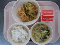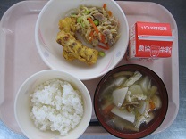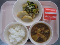 今日は中華風のメニューでした。スープには、椎茸も入れたので、よくダシが出ていました。餃子はパリッと揚がっていて、あちこちから「パリッ」「サクッ」という音が聞こえていました