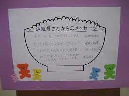 ~ 調理員さんから給食ありがとうの木のお礼のメッセージが届きました~
