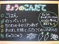 今日は地元産の大根を使って、マーボー大根を作りました。マーボーどうふよりあっさりした味に仕上がります。野菜がたくさんとれるメニューです。みんな残さず食べていました(^-^)