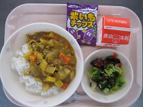 今日は月に一度のかみかみ給食です。いつものカレーの材料をかみかみ食材にしてみました。ごぼう、れんこん、大根、にんじん、さつまいも、玉ねぎを使っています。紫いもチップスはいつも人気です![]()