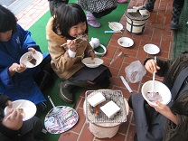 粕汁に入っている打ち豆も輪島産のものです輪島の打ち豆は青大豆で作るので、色もきれいです。みんな残さず食べていました