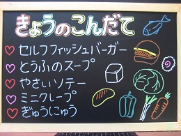 今日は、魚のフライとスライスチーズを切り目の入ったバーガーパンにはさんで食べました。デザートのクレープは子どもたちにいちばん人気です。今日も残食ゼロでした![]()