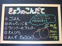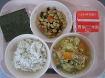 今日は手巻き海苔(4枚入り)で菜めしを包んで食べました。海苔で巻いて食べるのはみんな楽しそうでした。煮豆に入れた昆布が苦手という子がちらほらいましたが、最後はみんな残さず食べました![]()