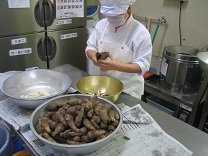 さといもは皮をむくのが大変なのですが、調理員さんたちががんばってくれました。いつもののっぺい汁がさらに美味しくなって、おかわりする人がたくさんいました。
