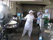 今日は予防医学協会の方が調理場に来られました。日頃の作業の仕方や、手洗い、施設設備のチェックなどをしていただきました