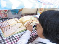 先日「あえのこと給食」がありましたが、興味を持ってくれたのか、1年生の女の子が、あえのことの絵本を読んでいました