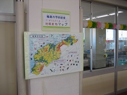 市内の栄養士の部会で、輪島市の学校給食で使われている地場産物のマップを作りました。門前地区版にアレンジしたものを、ランチルームに掲示しました。給食で使われるものだけでも、たくさんの食品があります