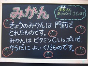 今日は、門前の本多さんがとって下さったみかんを出しました。黄色く色づいておいしいみかんでした。たくさんの数をそろえて下さってありがとうございました。おいしくいただきました