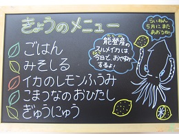 今日は午後から研究発表会のため、給食も少し早く始まりました。今シーズンの地元産のイカは今日で終了しました。また来年の5月まで、おいしい地元産のイカを待ちたいと思います