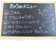 今日はハロウィーンということで、給食のメニューもちょっとハロウィーンを意識してみました。デザートのかぼちゃのババロアもおいしかったです![]()