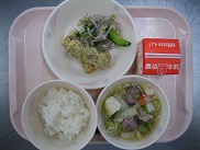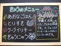 今日は、沖縄料理の「クーブイリチー」を出しました。クーブは昆布、イリチーは炒め煮という意味だそうです。昆布を美味しく食べられました。とりすきも、あまから味で子どもたちが好む味でした![]()