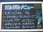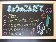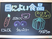 今日は、「目の愛護デー」が近いので、目に良い食品を多く使ったメニューにしました。今日もほとんどの子が残さず食べることができました![]()