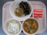 梅ごはんはちょっと苦手です~と言う子が何人かいましたが、がんばって食べていました。今日は午後から合唱の集いがあり、3,4,5年生は出かけていきました![]()