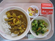 今日は、いか、えび、あさりの入ったシーフードカレーでした。お肉のカレーもいいですが、シーフードもあっさりしていて美味しいです。全員残さず食べました![]()