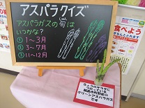 今日は地場産物給食の日でした。今日使った地場産物は、グリーンアスパラガス、イカ、玉ねぎ、しいたけ、きゅうりです。