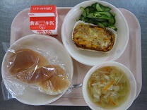 今日は、「1年生保護者給食試食会」でした。児童に人気の米粉パンとラザニア風を試食していただきました。おうちの方と向かい合わせで座って、1ねんせいたちは、にこにこ嬉しそうでした。いつもより早く食べ終わっていました。