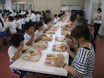 暑くなってきましたが、子どもたちは食欲も落ちることなくよく食べています。(ランチルームは冷房をかけて快適な給食時間を過ごせるようにしています) 今日はいつもより早く食べ終わっていました![]()