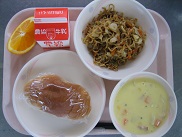 今日は門前産の切干大根をナポリタン風に味つけして出しました。みんな結構気に入ってくれたようです。ちくわが苦手・・・と言っている子がいましたが、最後には全部食べて、元気に走っていきました