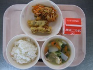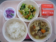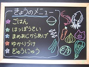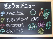 今日は野菜類や豆あじが苦手、という子が結構いました。でも時間がかかってもがんばって食べていました。だんだんと好ききらいも少なくなってきています![]()